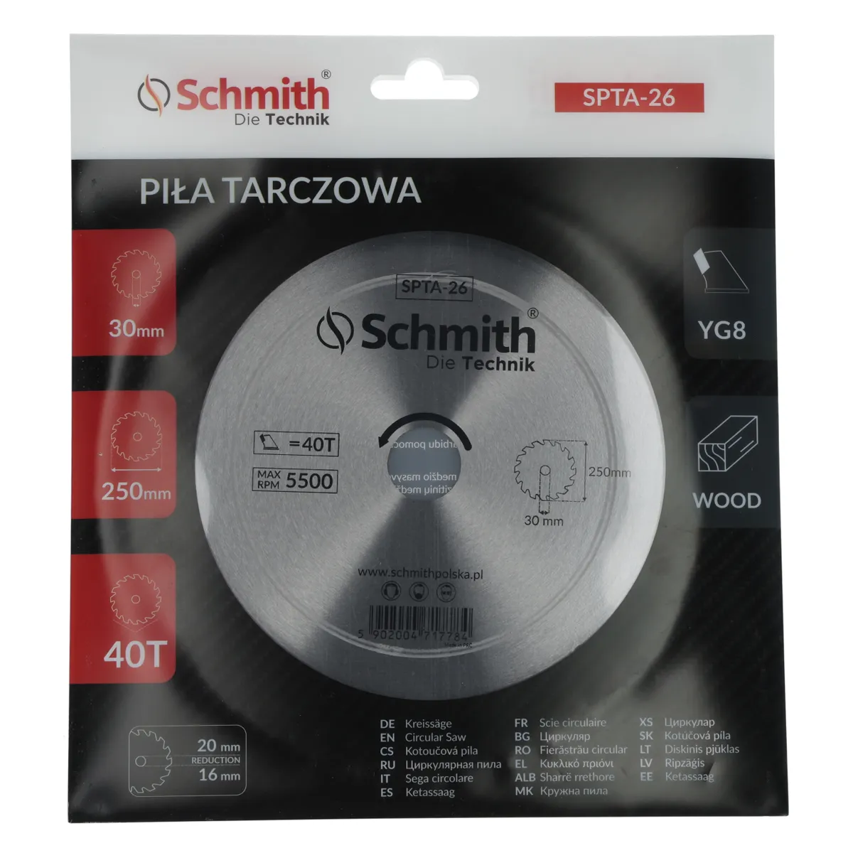 Tarcza pilarska 250mm 40T otwór 30mm Schmith