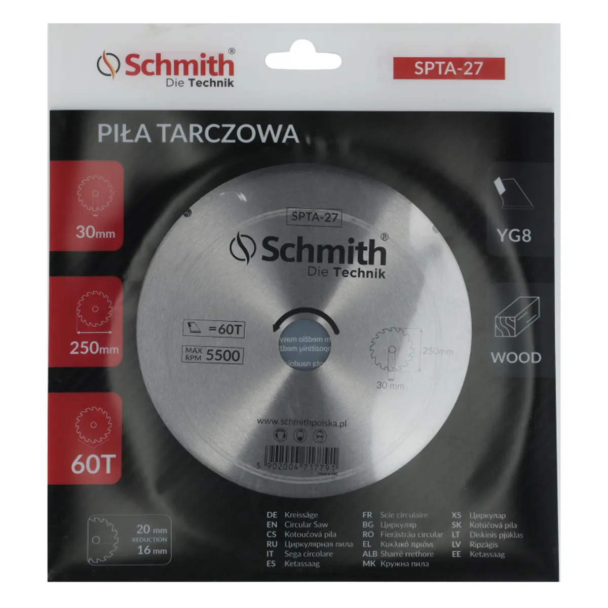 Tarcza pilarska 250mm 60T otwór 30mm Schmith