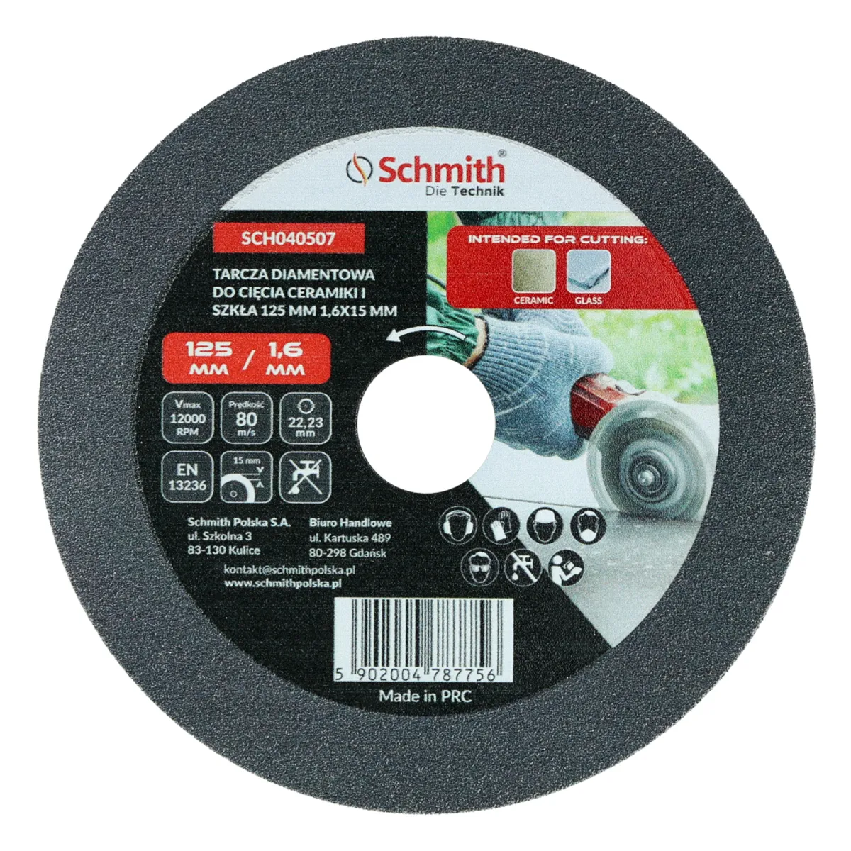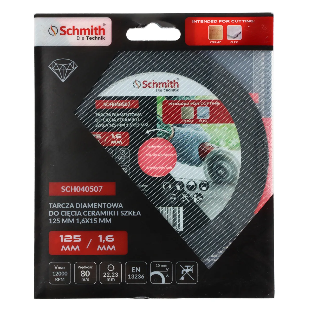 Tarcza diamentowa do cięcia ceramiki i szkła 125x1,6mm Schmith