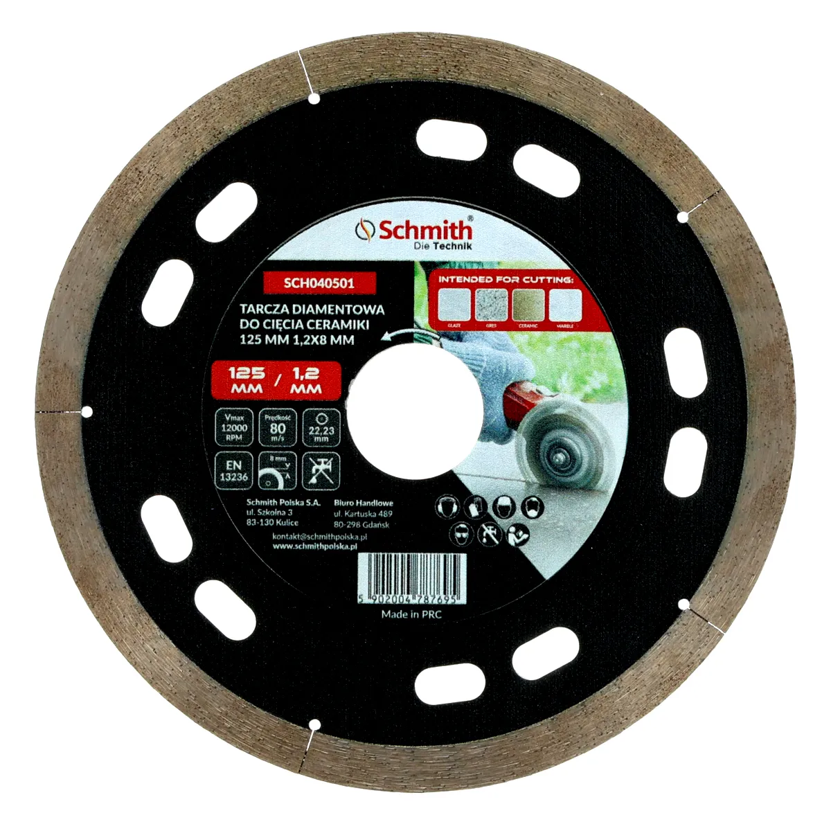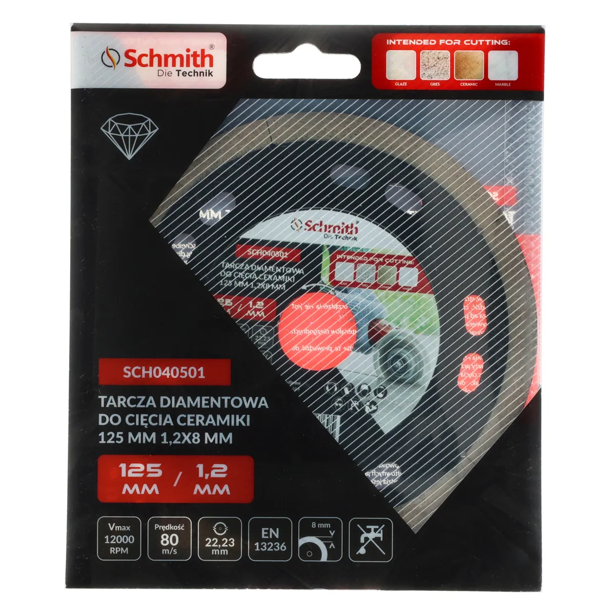 Tarcza diamentowa do cięcia ceramiki 125x1,2mm Schmith