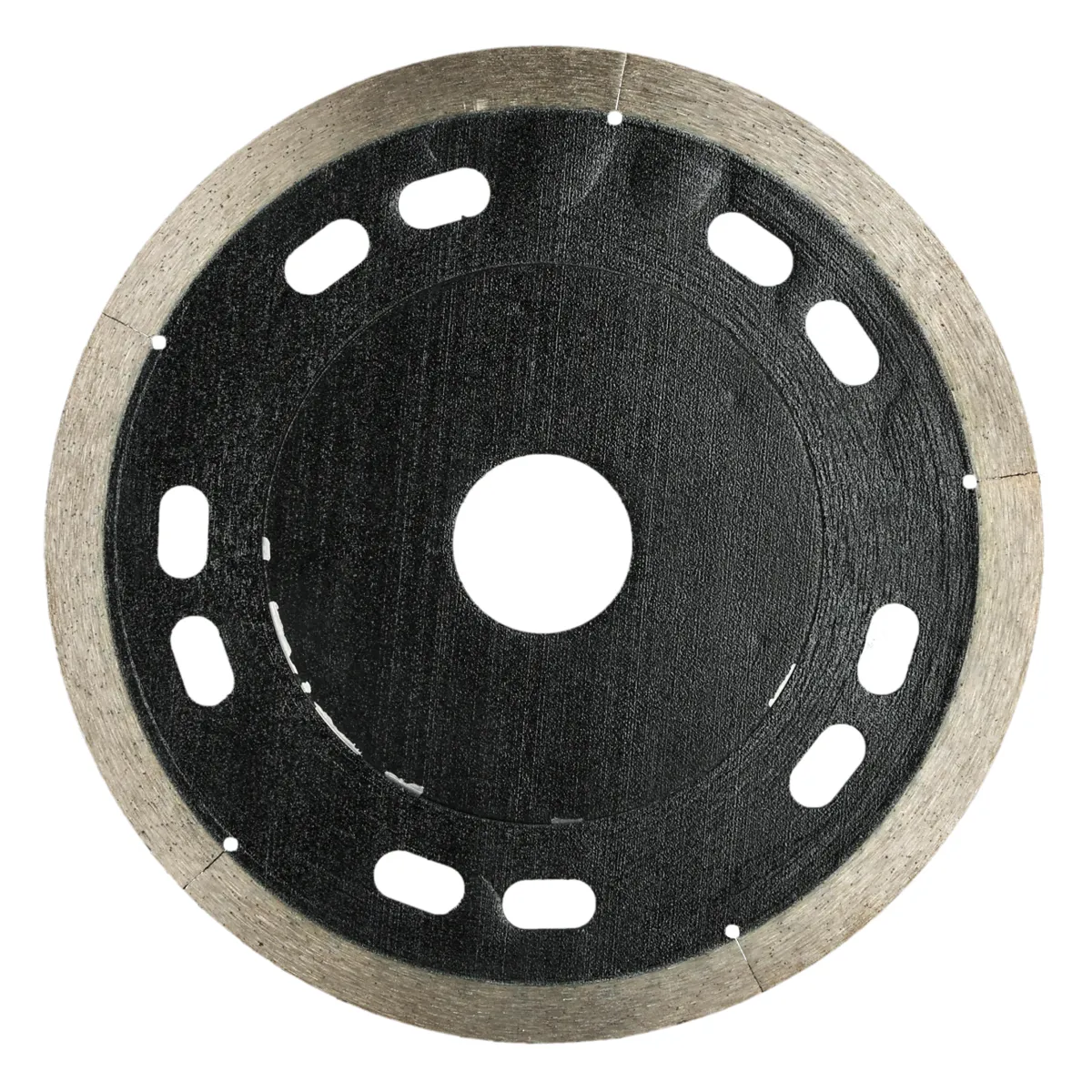 Tarcza diamentowa o wzmocnionym korpusie, który gwarantuje stabilność tarczy podczas cięcia i lepsze odprowadzanie ciepła. Ze względu na cienki nasyp diamentowy, tarcza przeznaczona jest wyłącznie do cięcia prostego. Dodatkowo, przy długich cięciach, należy zapewnić tarczy krótkie przerwy na biegu jawołym, aby nie przegrzać cienkiego korpusu.