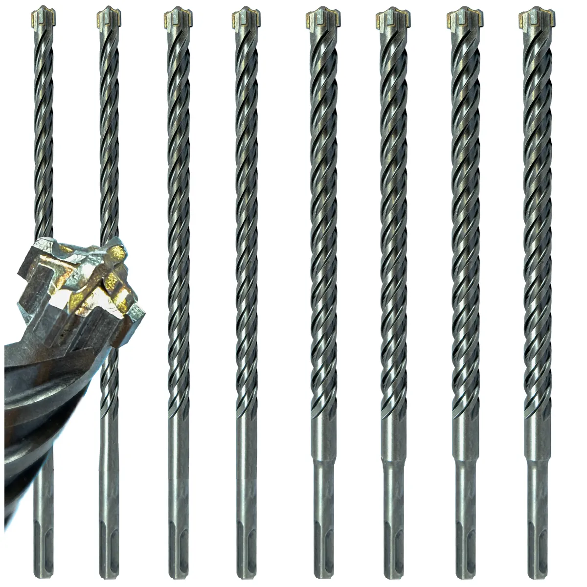 Komplet wierteł ulepszonych cieplnie, przeznaczonych do wiercenia otworów w materiałach o dużej gęstości. Posiadają ostrza z węglika spiekanego, które zachowują wysokie właściwości skrawające przez długi czas. Wiertła doskonale radzą sobie z przewiercaniem zbrojeń, a także w wykonywaniu otworów w żelbetonie, cegle, kamieniu naturalnym, betonie czy marmurze. Zawartość chromu zwiększa ich odporność na ścieranie.