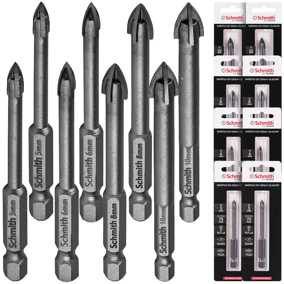 Zestaw wierteł do precyzyjnego wiercenia w szkle i glazurze 5-10mm 8 szt. Schmith