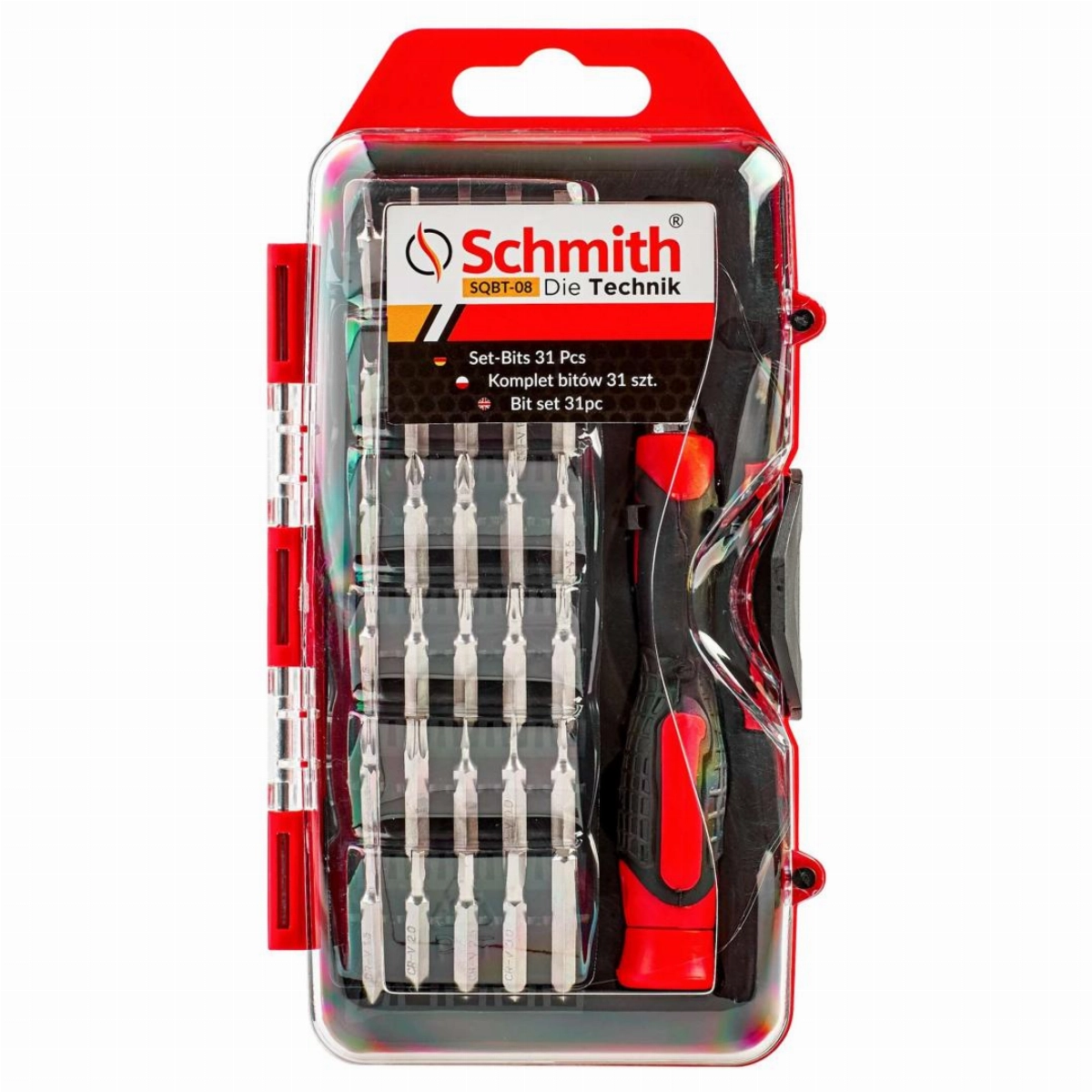 Zestaw zawiera bogaty komplet standardowych i specjalistycznych typów końcówek o długości 25 mm składający się z 31 elementów.