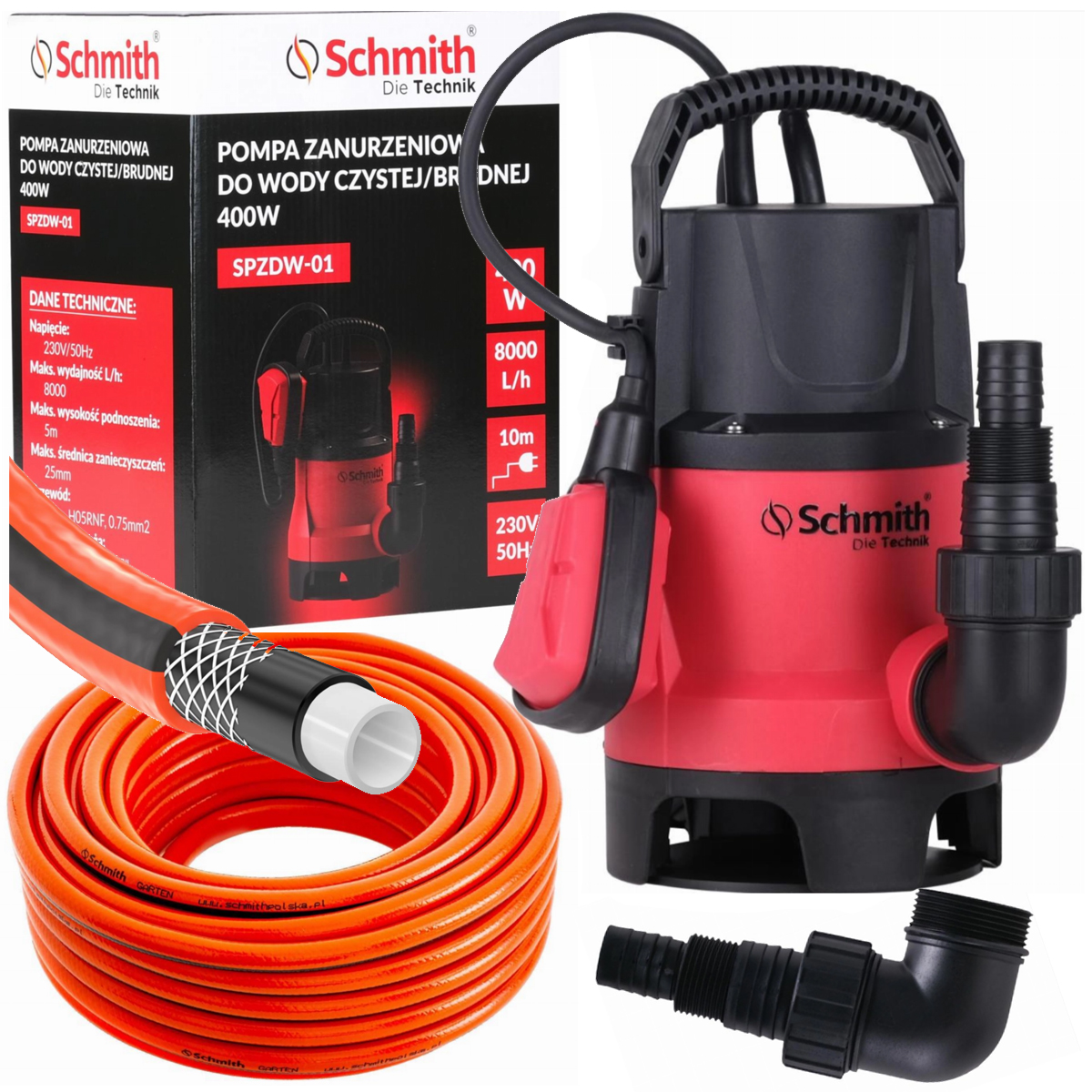 Zestaw pompa do brudnej wody 400W + wąż 1" 10m Schmith