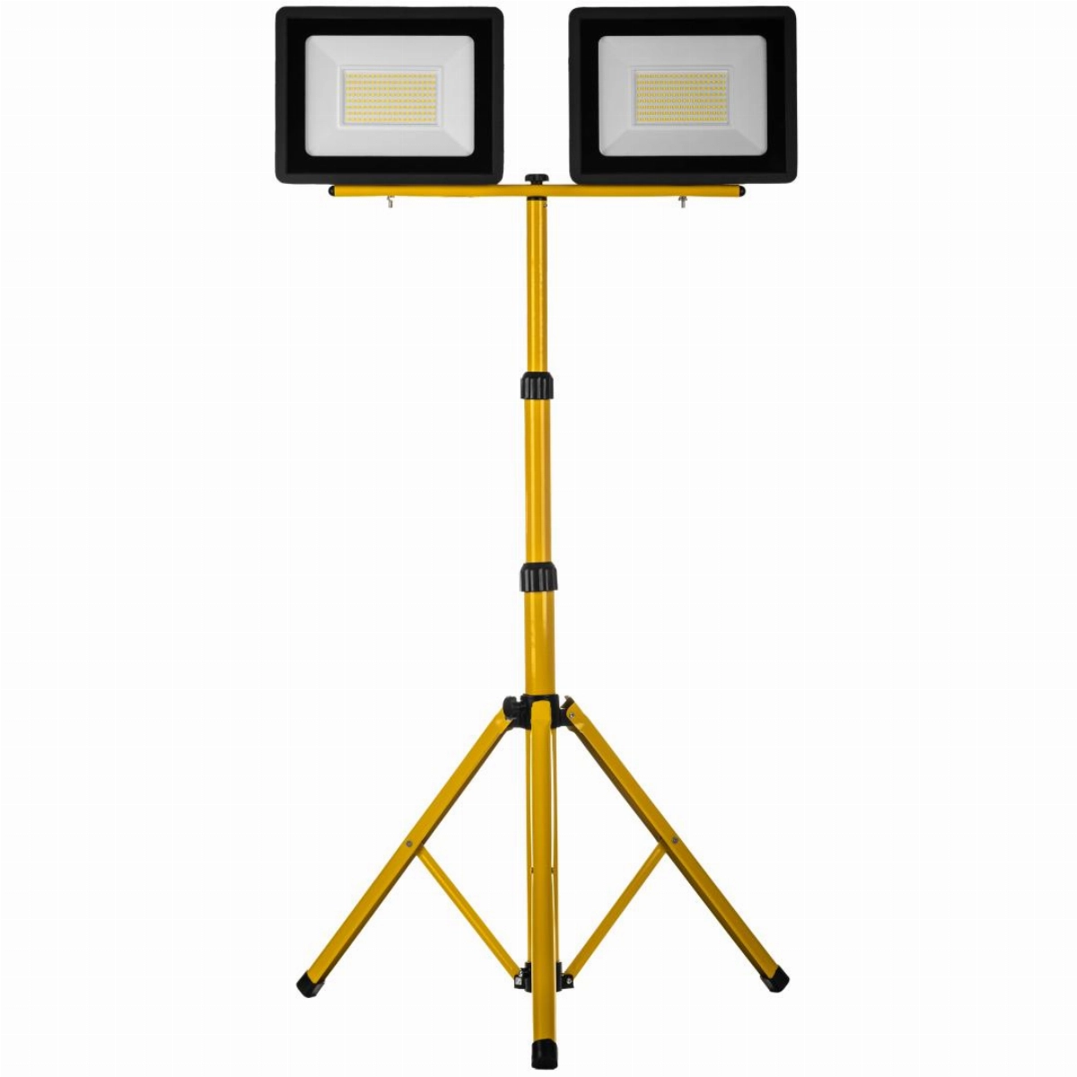 Naświetlacz ledowy na statywie to ideaony produkt do pracy przy pracach wykończeniowych i remontach. Dwa naświetlacze ledowe o mocy 100W każdy zapewniają wysoką jakość pracy w barwie zimnej. Produkt posiada klasę szczelnosci IP65 dzięki czemu jest wodoszczelmy i pyłoszczelny. Ilość lumenów to 2x7200 lm. Produkt ma stabilny statyw w kolorze żółtym