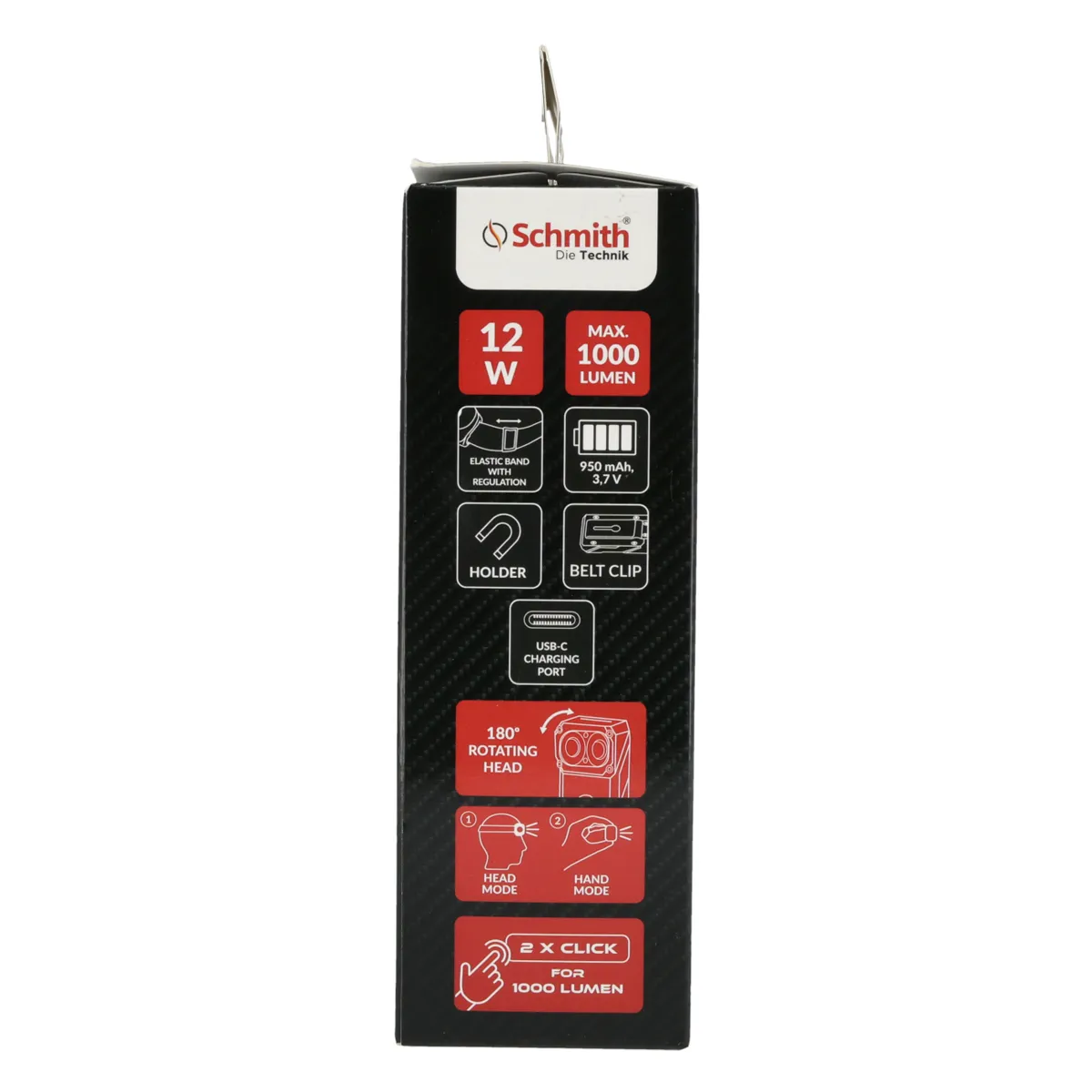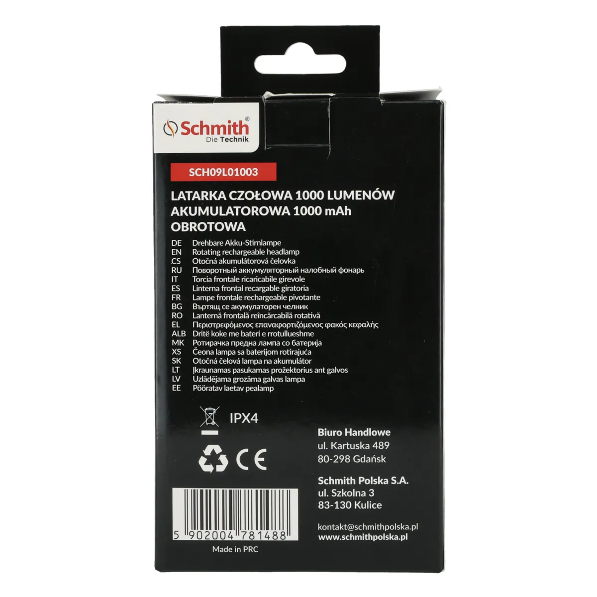 Akumulatorowa latarka czołowa, obrotowa 1000lm 950 mAh Schmith