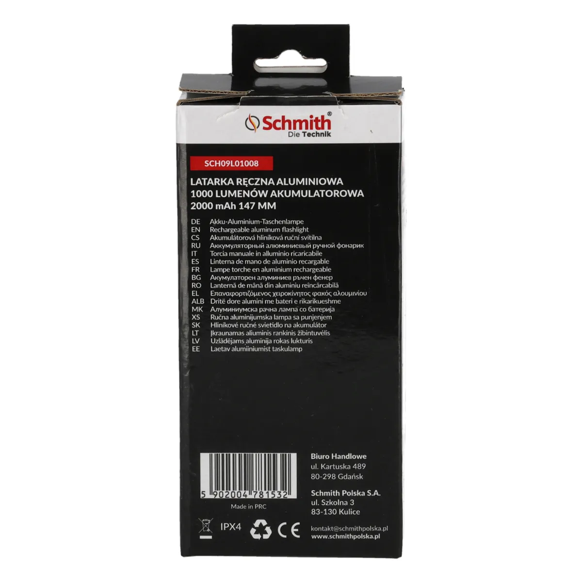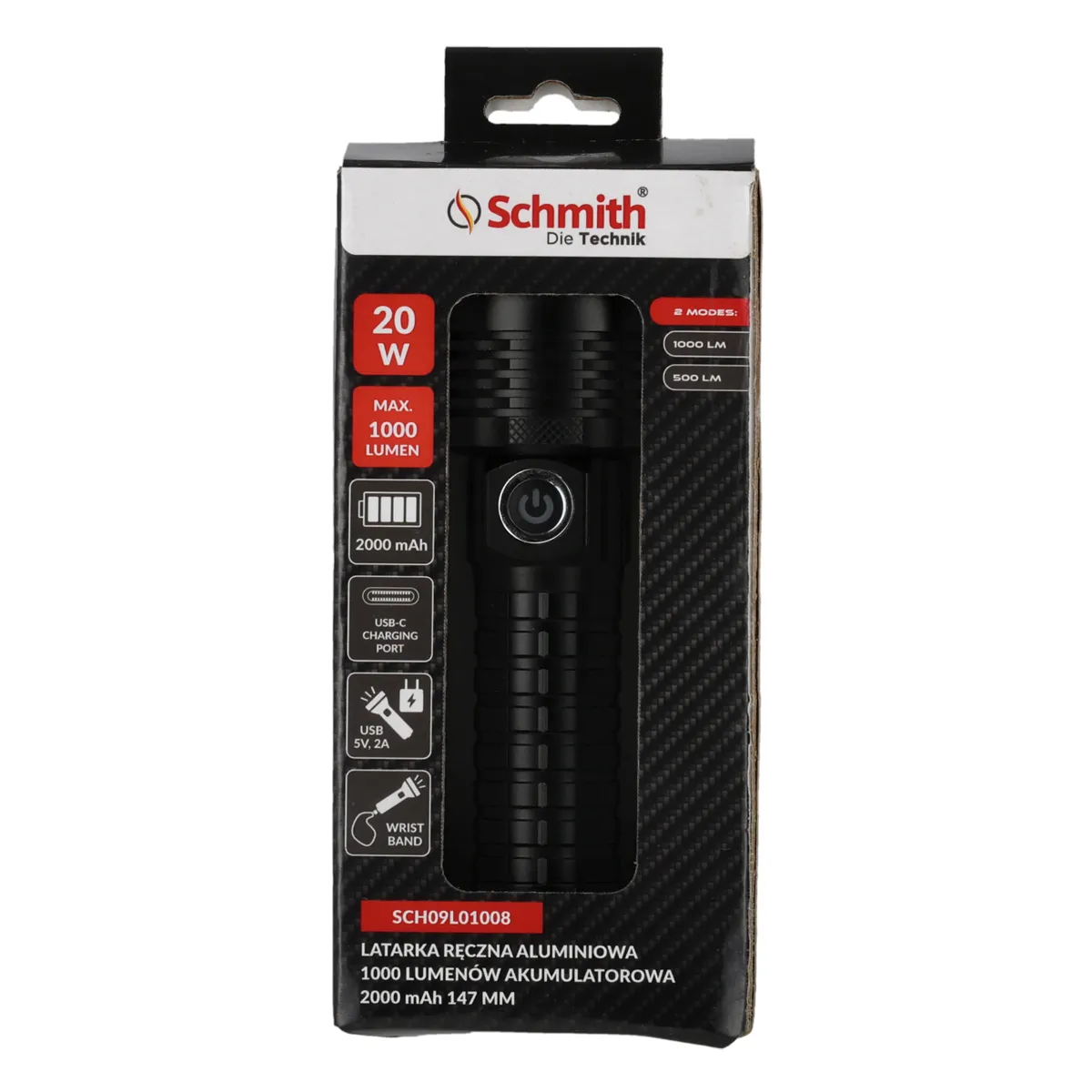 Akumulatorowa, aluminiowa latarka ręczna 1000lm 2000mAh Schmith