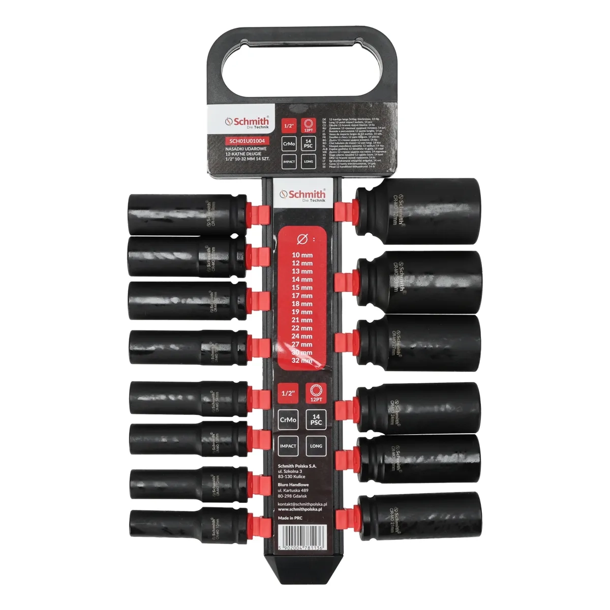 Zestaw 14 nasadek udarowych 12-kątnych długich 1/2" 10-32mm Schmith