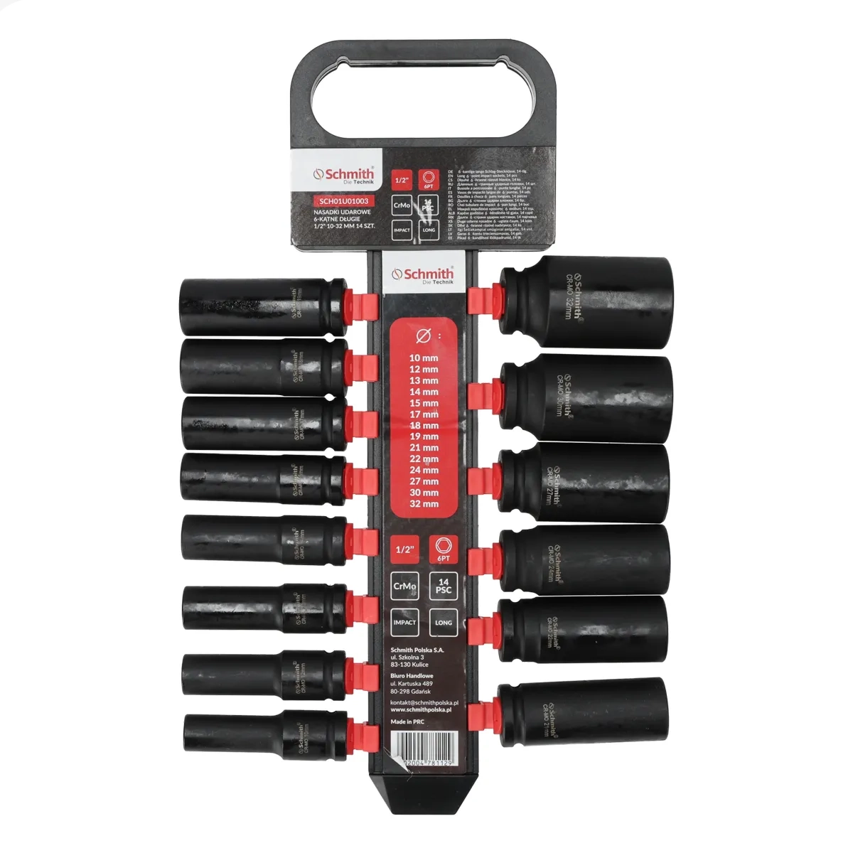 Zestaw 14 nasadek udarowych 6-katnych dlugich 1/2" 10-32mm Schmith